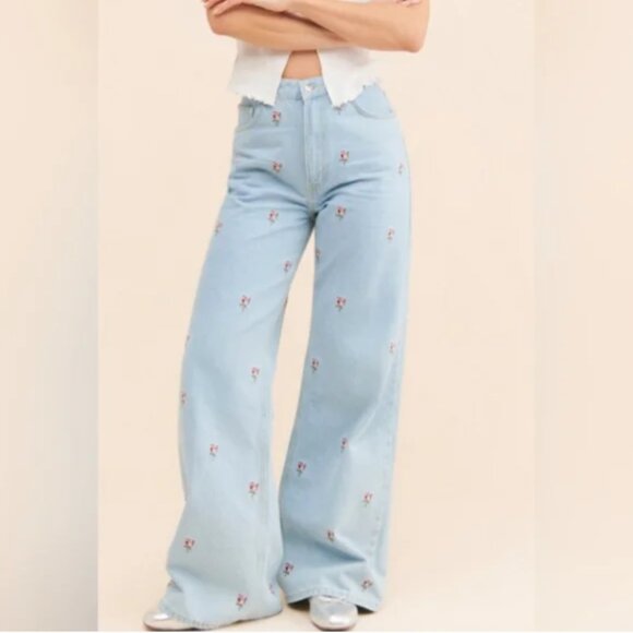 Farm Rio Rose Embroidered Blue Floral Design Jeans size 27