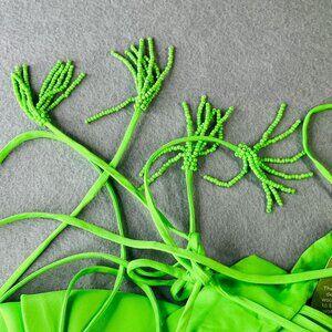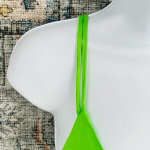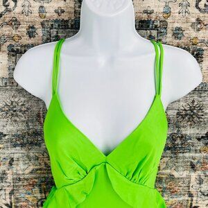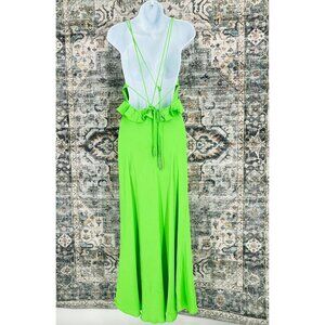 Farm Rio Ruffle Midi Dress Size M Satin Strappy Back Lime Green Plunge New Tags