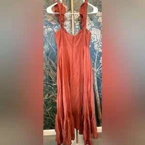 Sleeveless maxi dress w/ flounce hem and ruffled straps