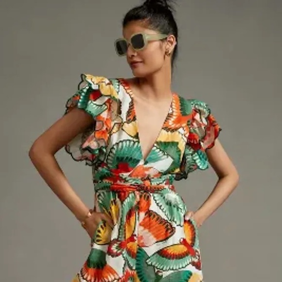 Farm Rio Ruffle-Sleeve Linen Jumpsuit never worn!!!