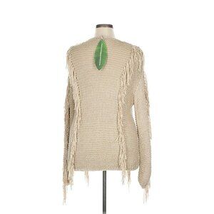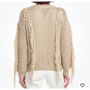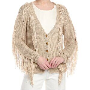 Farm Rio Sand Stripes Fringes Knit Cardigan Sz XL Button Up Boho Knitted NWT