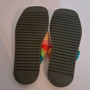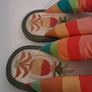 Farm Rio Sandals Women's 7 Puffy Flip Flops Fabric Colorful Tropical Summer