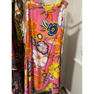 Farm Rio Satin Slip Midi Skirt Medium Pink