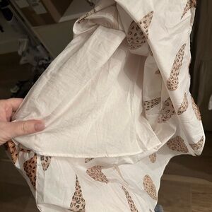 Stylish white dress featuring a unique brown seashell print. Perfect for a beach outing or casual day. Size XS. In excellent condition no stains of tears/signs of wear. Was only worn a few times. The ties on the straps are also removable. Light lining so you don’t have to worry about it being see through - showed in last pic.