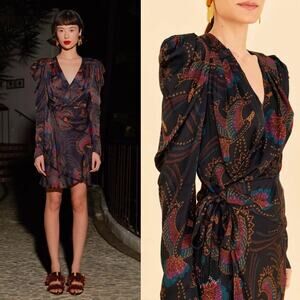 Farm Rio Sequin Toucans Mini Wrap Dress S
