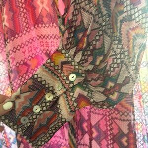 Long flow dress with a bit of a south western print. I wore this in Arizona and it was perfect. It could be pretty baggy so I cinched it with a slinky belt. Comes with a pink slip underneath.