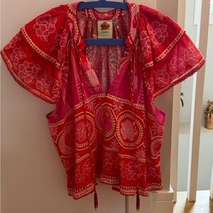 Vibrant floral blouse with flutter sleeves. Perfect for playful days. Worn once - great condition