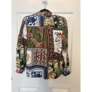 Farm Rio Shirt Womens XS Multicolor Tropical Patchwork Button Front Boho