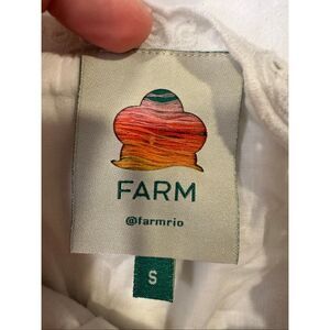 Feminine and chic Farm Rio cropped blouse in off-white. Features adjustable shoulder-tie straps, a flattering peplum hem, and delicate lace details. Size Small with a pit-to-pit (PTP) measurement of 15.5”. Perfect with jeans, skirts, or layered looks.