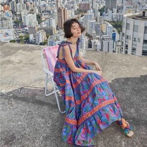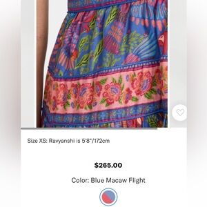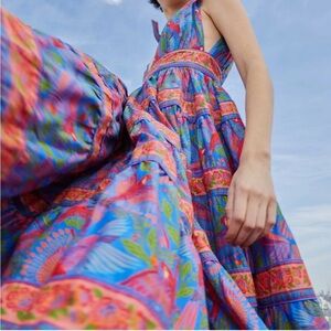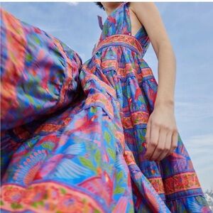 Farm Rio Size Small Blue Macaw Flight Midi Dress Tiered Size Medium NWT