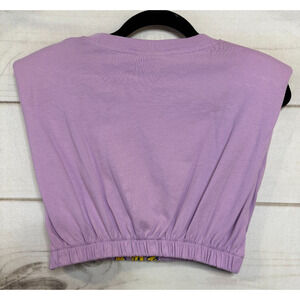 The Farm Rio Size XS Summer in the Tropics Purple Crop Top is a stylish and trendy addition to any woman's wardrobe. Made by the popular brand Farm Rio, this purple tank top is perfect for casual occasions during the summer and spring seasons. The cropped style adds a modern touch, while the machine washable fabric makes it easy to care for. With its vibrant color and cool design, this top is sure to make a statement while keeping you comfortable and looking fabulous.
