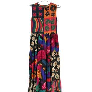 Farm Rio Sleeveless Pink Viscose Patchwork Print Dress Size S PETITE: pullover styling, sleeveless, patchwork print, measurements: 15.5 inch bust x 52 inch length.