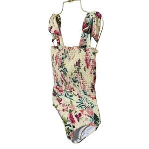 Farm Rio Smocked Shoulder-Tie One-Piece Swimsuit XS. Shipped with USPS Ground Advantage.