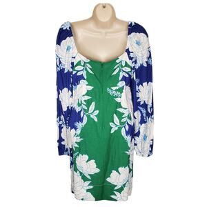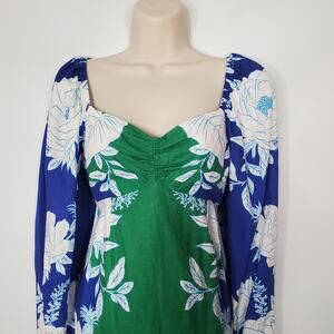 Farm Rio Soft Garden Linen Blend Puff Sleeve Mini Dress Floral Blue Size Small