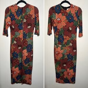 Farm Rio Stitched Flower Print Midi Dress Size Small