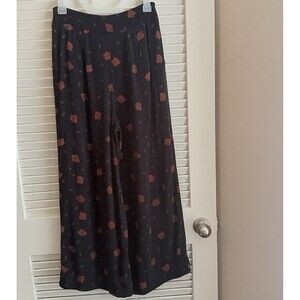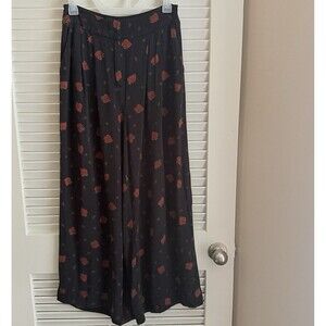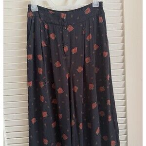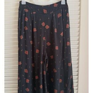 Farm Rio Strawberry Print Wide Leg Pants Small High Rise Black Red Boho Hippie