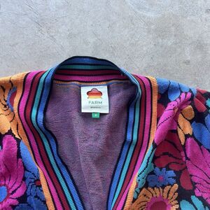 Farm Rio Sunny Daisies Knit Cardigan Sweater M Colorful Floral Boho Festival. Condition is Pre-owned - Excellent. Shipped with USPS Ground Advantage.