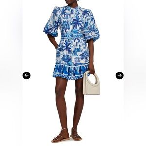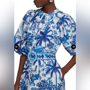 Sweet Rio Short dress Short sleeves Crew neck Buttoned fastening Belted waist Two-tone print Fitted waist. Worn once for an event!