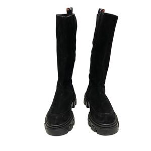 Farm Rio Tall Suede Lug Sole Boots Embroidery Embroidered Black