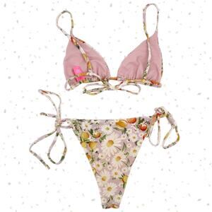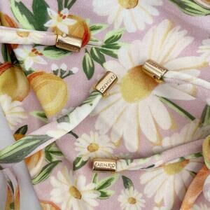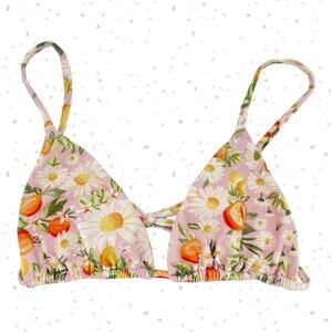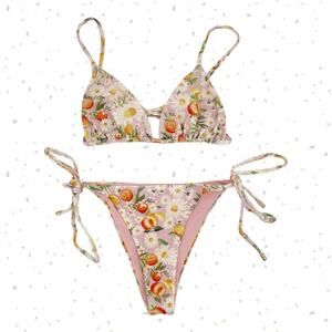 Farm Rio Tangerine Dream Bikini Set Pink Fruit Floral Side Tie Triangle Size S