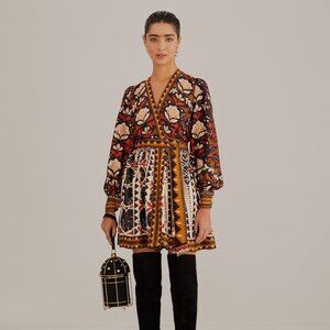 Farm Rio Tapestry Garden V-Neck Wrap Mini Dress Size XS