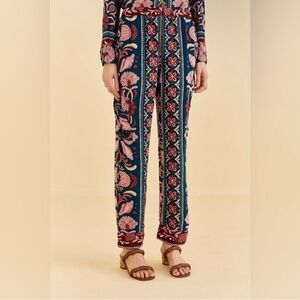Farm Rio Teal Seashell Tapestry Cargo Pants size L NWOT