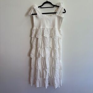 Farm Rio Tiered Broderie Anglaise Cotton Midi Dress White Eyelet XL feminine new