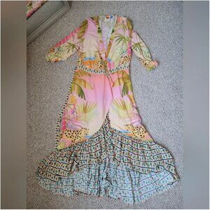 Farm Rio Tiger Tropical Print Wrap Maxi Dress size L