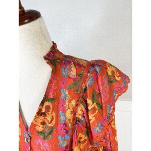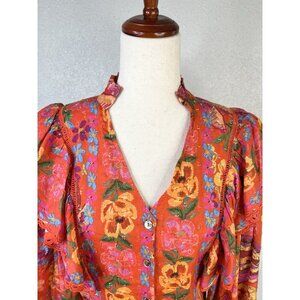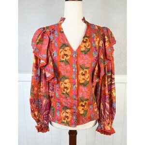 Farm Rio Top Spring Banana XS Floral Ruffle Puff Sleeve Boho Artsy Vacation