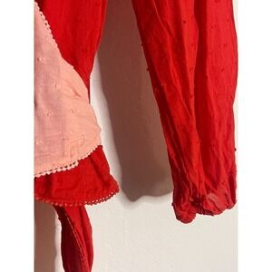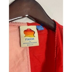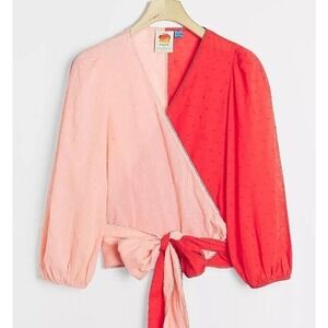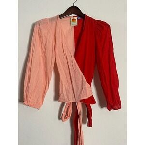 Farm Rio Top XS Wrap Color Block Pink & Red Cotton Tie Waist Anthopologie