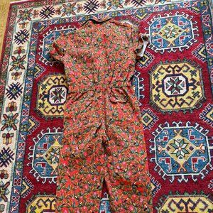 Farm Rio Toucan Orange Jumpsuit Zip up short sleeve Jungle Print Summer
