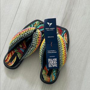 Farm Rio Toucans Black Banana Crochet Flip Flops Vegan Sandals NWT