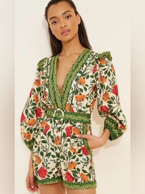 Farm Rio Embroidered Pineapple Cotton Trench Coat
