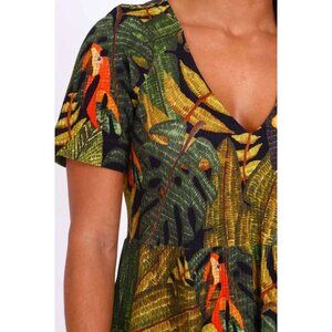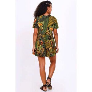 Farm Rio Tropical Beauty Tiered Mini Dress Green Multicolor Toucan P Small