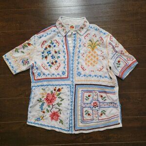 Farm Rio Tropical Cross Stitch Shirt Womens XS Embroidered Boho Hippie Vintage