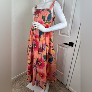 Farm Rio Tropical Dress Midi Maxi Fit & Flare Straps Tiered Ruffles XS.