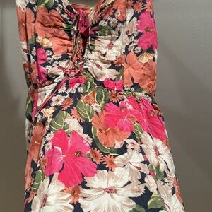 Farm Rio Tropical Hibiscus Floral Spaghetti Strap Mini Dress