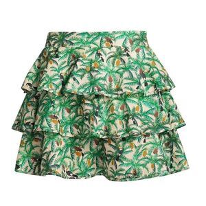 Farm Rio Tropical Toucans Print Ruffles Layered Mini Skirt Green Size Small