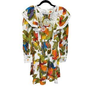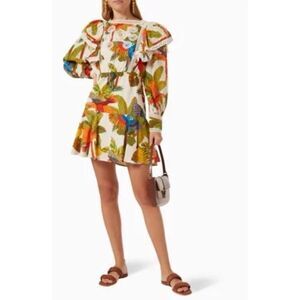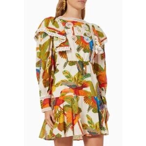 Farm Rio Tropical Birds Mini Dress Small Boho Ruffle Sleeve 100% Cotton