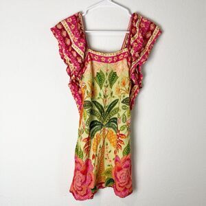 Farm Rio Tunic Ruffle Sleeve Palm Blouse XS 224