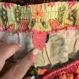 The Farm Rio Tunic Ruffle Sleeve Palm Blouse in XS size is a stylish and colorful addition to any woman's wardrobe. This blouse features ruffle accents, a tunic style design, and a vibrant multicolor palm print. Perfect for adding a touch of fun and flair to any outfit, this blouse is sure to make a statement and stand out in any casual or dressy ensemble.