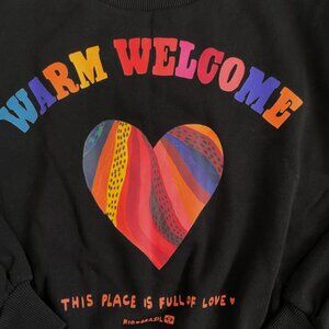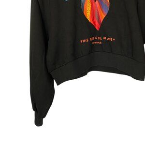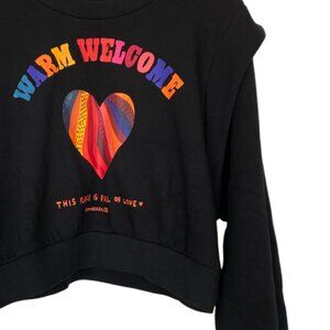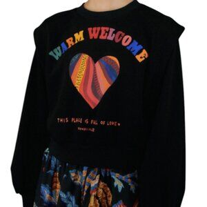 Farm Rio Warm Welcome sweatshirt. Very nice long-sleeved black sweatshirt with a boxy fit, ribbed round neck, puffed sleeves and a multicolored pattern. Please see pictures for more details and measurements. New with tags.