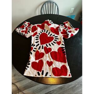 Farm Rio White Hearts Mini Sweater Dress Sz M
