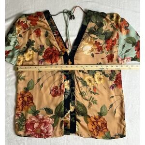 Farm Rio Women's Blouse Size S Multicolor Floral Tropical Tunic Tie Boho Artsy