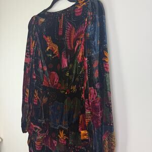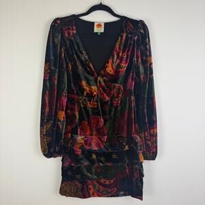 Farm Rio Womens Crazy Mix Velvet Jungle Safari Plunge Neckline Mini Dress XS