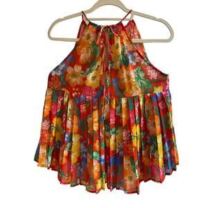 Farm Rio Women's Halter Floral Pleated Blouse Size Medium