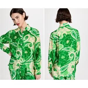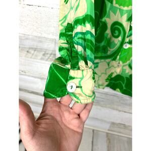 Farm Rio Women’s M Green Cream Tropical Groove Long Sleeve Viscose Blouse NEW
