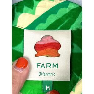 Vibrant and bold, this Farm Rio women’s size medium Tropical Groove blouse captures the brand’s signature Brazilian flair with a lush green tropical print. Crafted from soft, breathable viscose, it offers a relaxed fit with long sleeves and a button-front design for versatile styling. Perfect for pairing with denim, linen, or skirts for an effortless resort-inspired look.