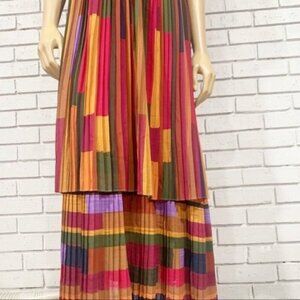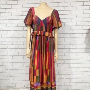Farm Rio Women’s Painted Stripes Blouson-Sleeve Pleated Dress - Size Small