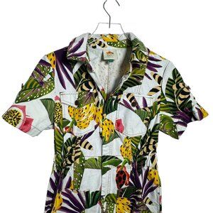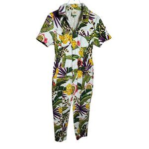 Farm Rio Women’s Striped Forest Tropical Print Jumpsuit Size Small zip front